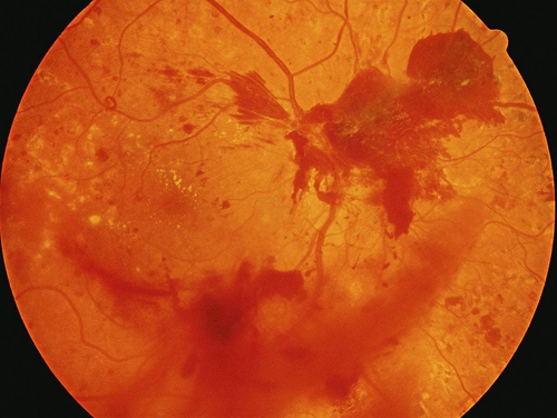 ◄视力严重下降:大量玻璃体积血可使视力严重减退,甚至只有光感。